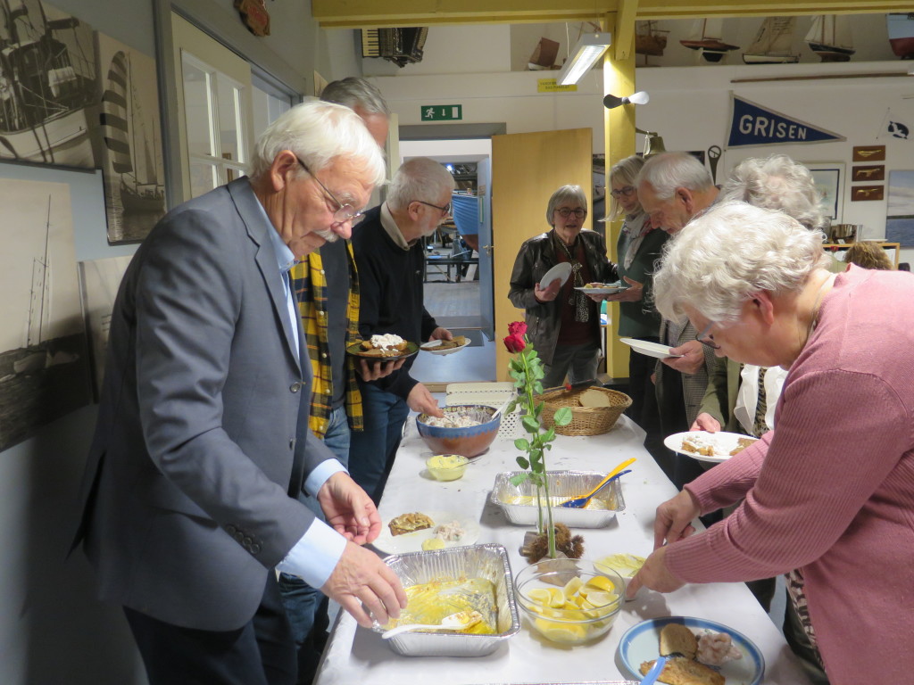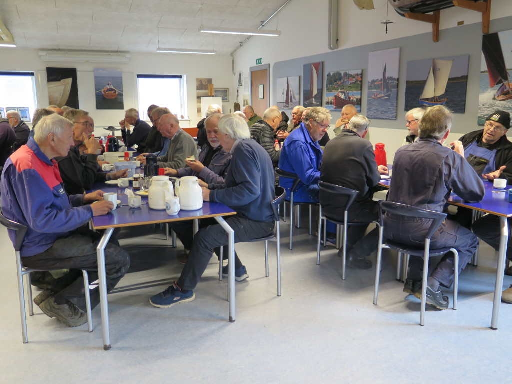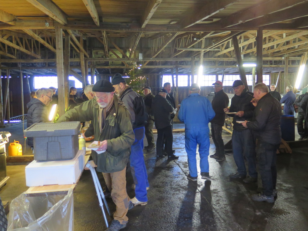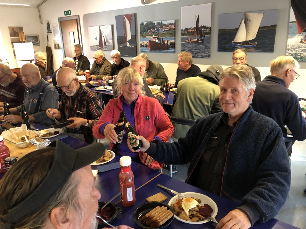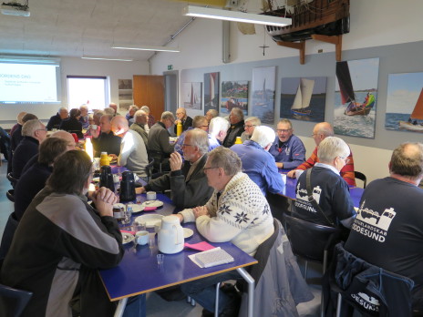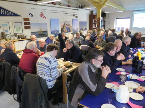 Skønt midvinter – dagen efter kyndelmisse – viser vejret sig fra sin smukkeste side. Otte plusgrader og en sol, der står op over en skyfri himmel. Vi har fuldt hus. 73 personer fra 12 forskellige bådelaug, har sluttet op om den traditionsrige dag. Folk er inviteret til klokken 10, men allerede godt 9 dukker de første op, og efterhånden går den muntre snak mellem gamle venner over kaffen og rundstykkerne med tandsmør og ost.