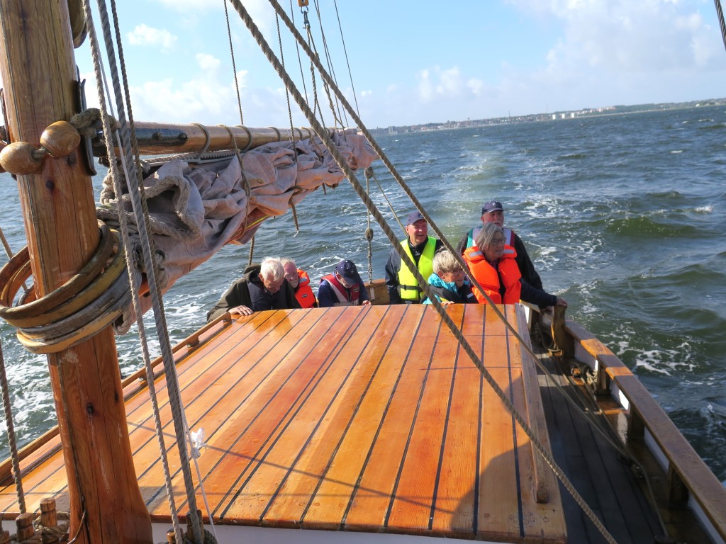 Frem mod dagen, lørdag den 10. august, blev vejrudsigterne studeret flittigt – blev det sejlads, eller skulle man vælge landtransport? Udsigterne tydede mere og mere på det sidste, og lørdag morgen var ingen i tvivl. Med en vestlig middelvind på 8 sekundmeter og 12 i stødene ville sejlads i de mindre både blive en blandet fornøjelse. Det gode skib Johannes motor blev rykket i gang og stævnede mod Venø Havn med halvdelen af deltagerne om bord. De øvrige kørte mod færgen i egne biler. Vi nød sejlturen og solen. Johanne gik rigtig godt i søen. De, der sad om luv, fik et par sprøjt søvand, men i solen og blæsten tørrede det hurtigt.