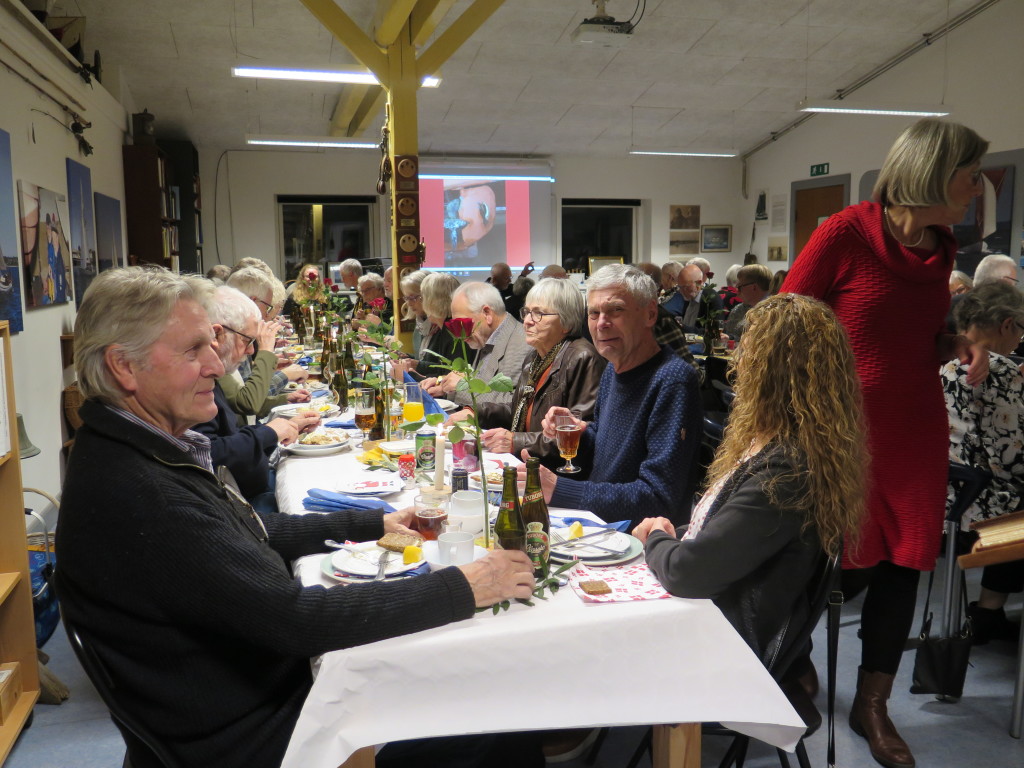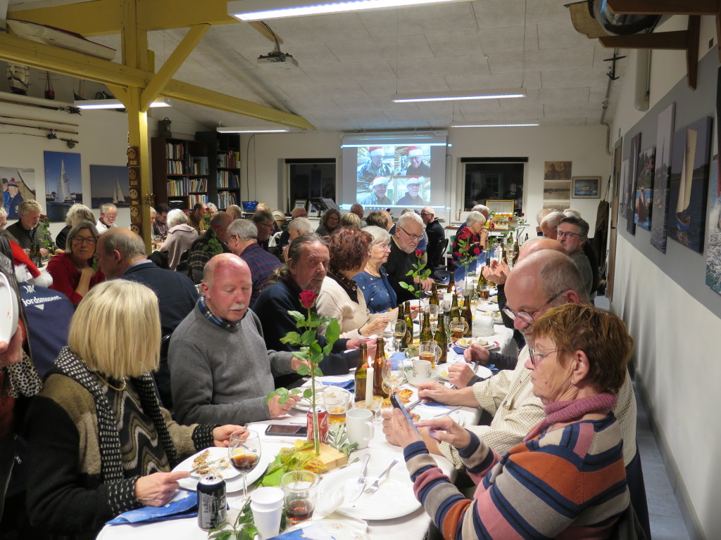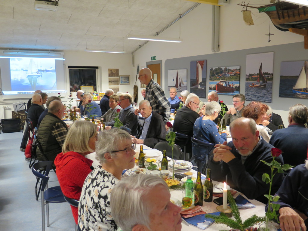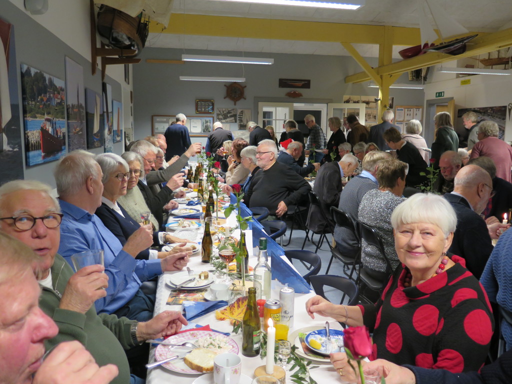 Klokken 18.00 samledes vi 45 damer og mænd til en lækker middag fra Meny i Struer. Snakken gik lystigt. Der var uddeling af deltagerdiplomer til alle og præmier til vinderne. Se resultatlisten. Bemærk lige tiderne, som ligger utrolig snert på hinanden. Det viser, at sejladserne var et tæt ræs. Flot gået til alle deltagerne.