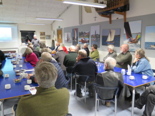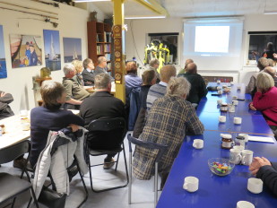 Klokken nærmer sig halv elleve og NFKs formand Asger Brodersen byder forsamlingen velkommen med en særlig velkomst til Nanna Folke fra Skibsbevaringsfonden. Vi synger Blæsten går frisk, og derefter får Nanna Folke ordet. Nanna vil i sit indslag komme ind på tre hovedpunkter :