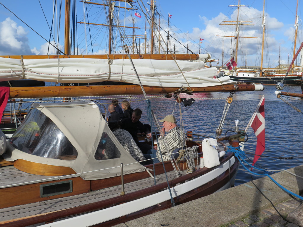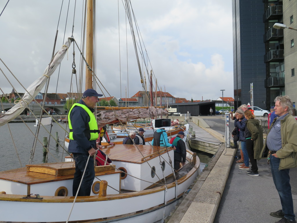 Vi havde desværre ikke fået meldt ud til vores gæster, at vi skulle mødes i den nye pavillon i Træskibs-havnen. Men de fandt os da, så vi kunne afvikle skippermødet som planlagt kl. 9.30. Her blev dagens program gennemgået, og den planlagte kapsejladsbane blev forelagt. Sjægtene skulle sejle banen rundt én gang, mens kølbådene skulle runde slagmærket og topmærket to gange, inden de kunne sejle i mål.